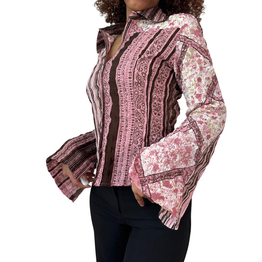 Vintage French Mixed Print Shirt Flared Cuffs (XS/S)