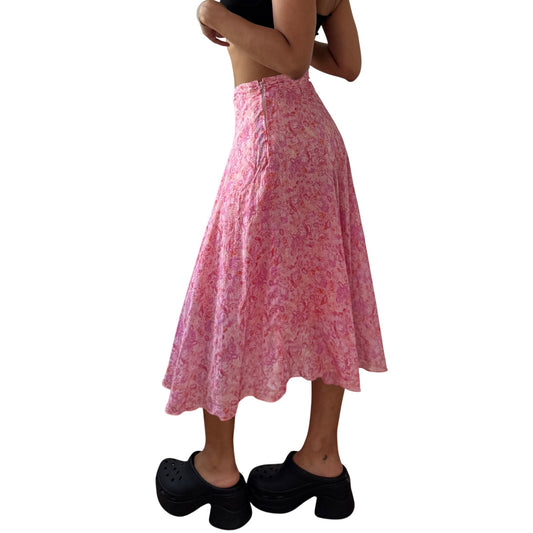 Vintage pink floral midi skirt 90s Italy (XS)