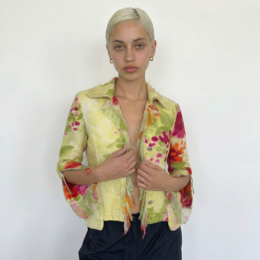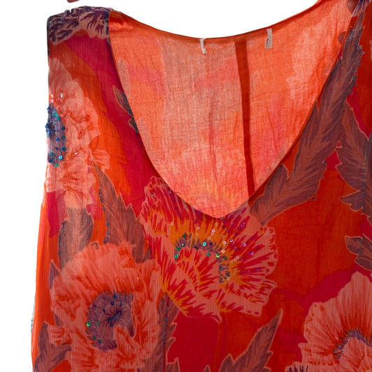 Vintage Floral Sheer Viscose Midi Dress Sequin Detail Sleeveless Ruffle Hem (M/L)