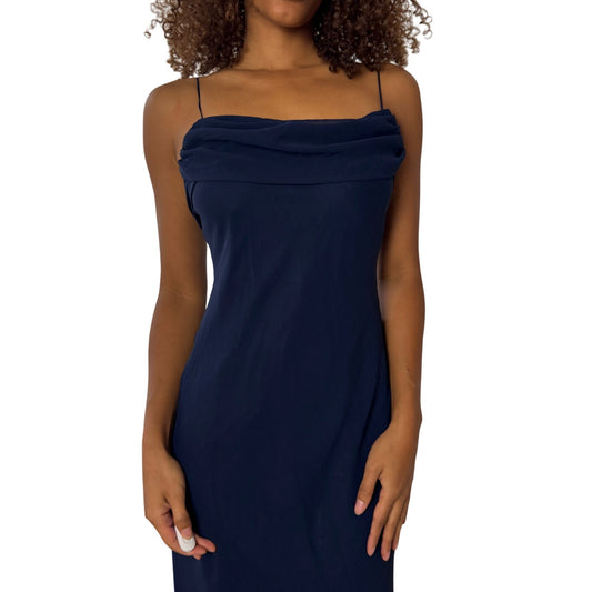 Vintage euro Y2K navy blue mesh maxi slip dress (S)