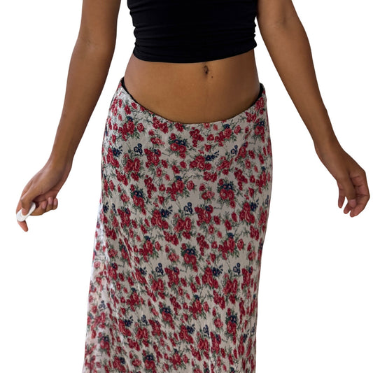 Vintage 100% Silk Floral Bias-Cut Maxi Skirt (S/M)