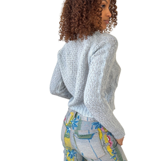 Vintage Italian grey with blue hue mohair blend cable knit cardigan (S)