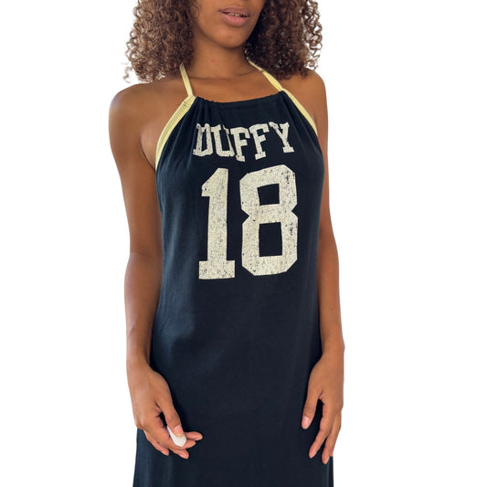 Vintage Franklin & Marshall Navy Halter Maxi Dress Graphic Duffy 18 (M)