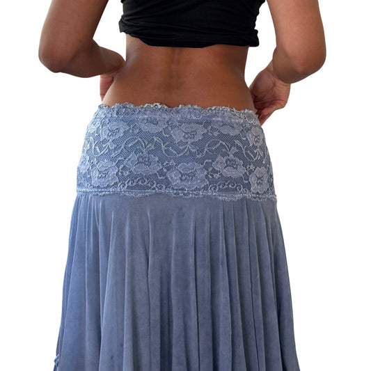 Vintage blue mesh handkerchief hem skirt lace waistband satin trim Y2K (S)