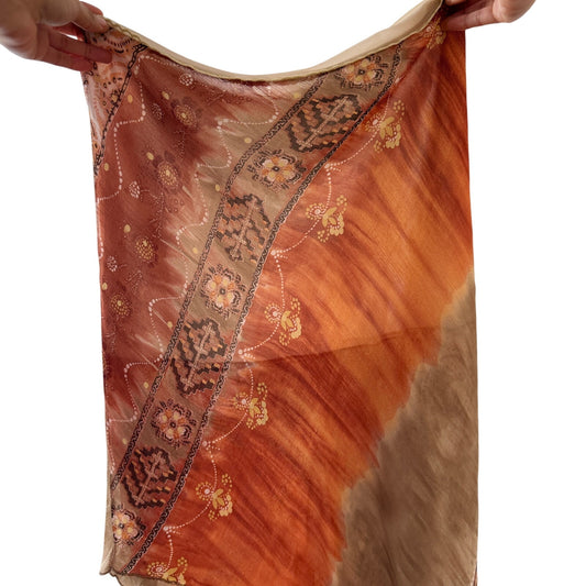 Vintage Italian Coral Tie-Dye Midi Skirt Linen Cotton Asymmetrical (S)