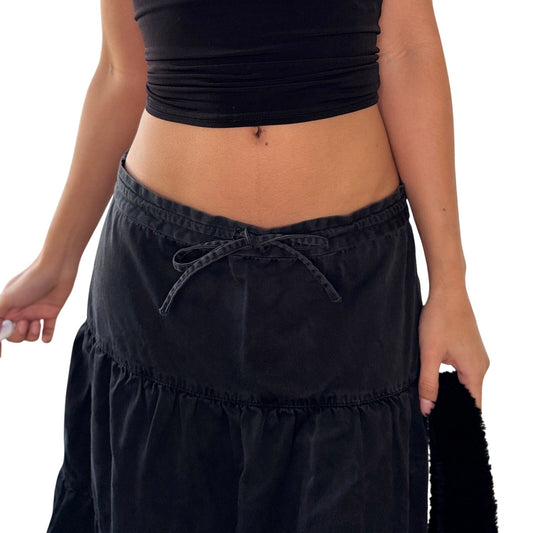 Vintage White Tiered Midi Skirt Ruched Waist Cotton Cottagecore (S)