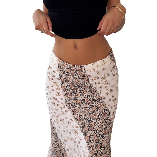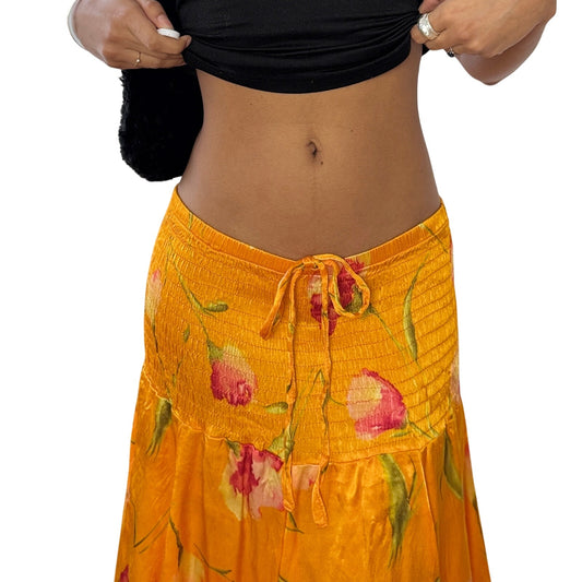 Vintage Italian Orange Floral Midi Skirt Convertible Strapless Dress (S/M)