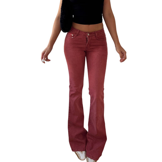 Vintage Red Wash Low Rise Flare Jeans Deadstock Cotton Y2K (XS)