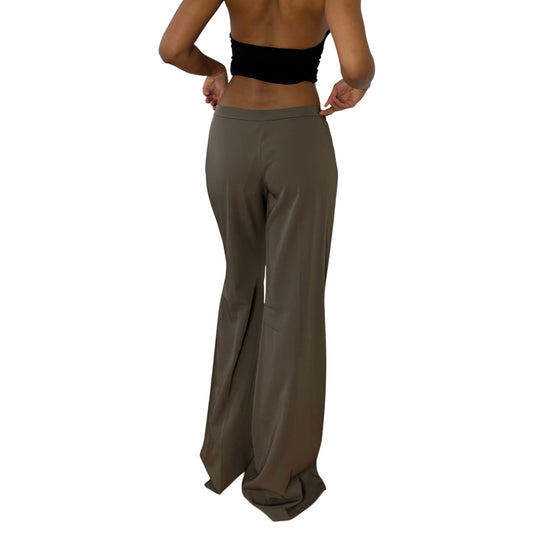 Vintage Italian khaki low rise wide leg trousers deadstock with tag and extended length (S/M)