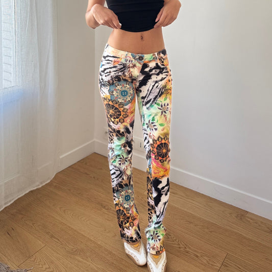 Vintage Italian Multicolor Patchwork Print Pants Low Rise Slim (S)