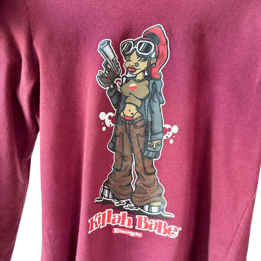 Vintage Killah Babe Red Graphic Long Sleeve Top Fitted Cotton Y2K (XS)