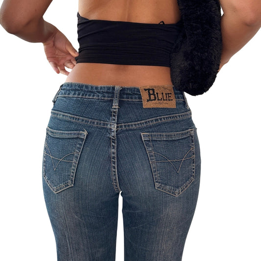 Vintage Italian Denim Jeans Logo Detail Low Rise Flare Cotton (S)