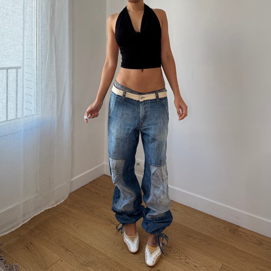Vintage Italian Low Rise Cargo Denim Jeans Adjustable Ankle Cotton (S/M)