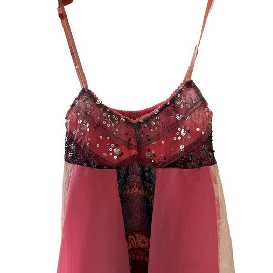 Vintage Italian Patchwork Silk Cami Top Sequin Lace Mixed Print (S)
