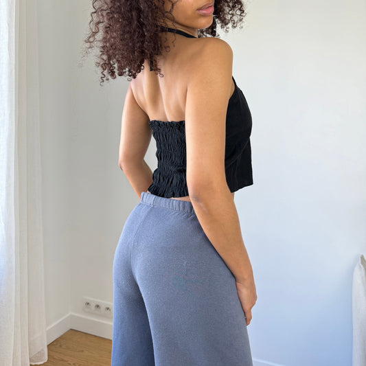 Vintage Italian Black Halter Top with Crochet Detail (Size S)
