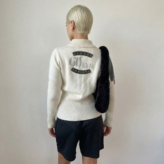 Italian vintage beige crochet knit cardigan with sheer mesh sleeves & ribbed knit cuffs (S)