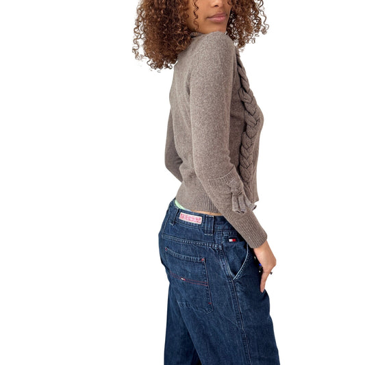 Vintage Italian Taupe Wool Blend Knit Sweater Braided Detail Fitted (S)