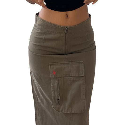 Vintage Y2K khaki A-line studded midi skirt by ONLY (Small)