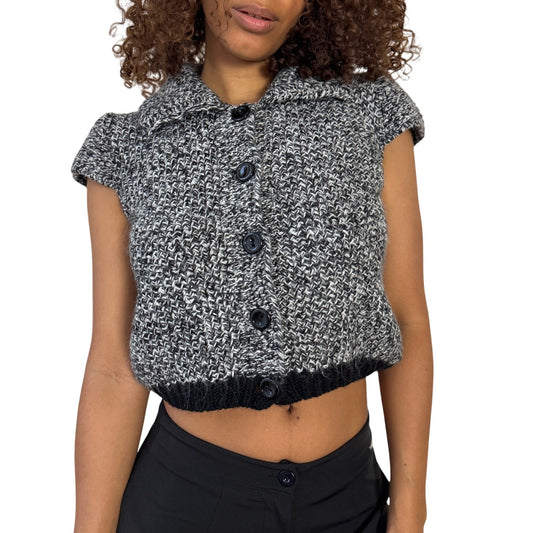 Vintage Italian grey marled knit slouchy short sleeve cardigan with button front (S)