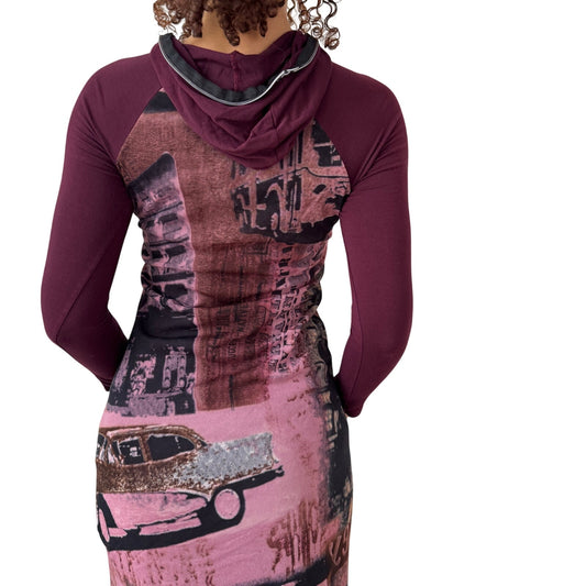 Vintage Burgundy Graphic Mesh Midi Dress (S)