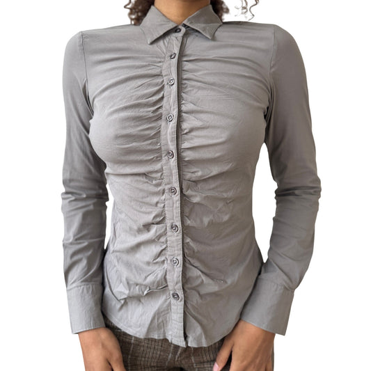 Vintage French grey ruched button-up shirt (XS/S)