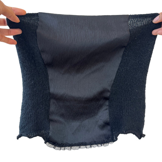 Vintage Italian mohair-blend knit & satin black bustier top (S)