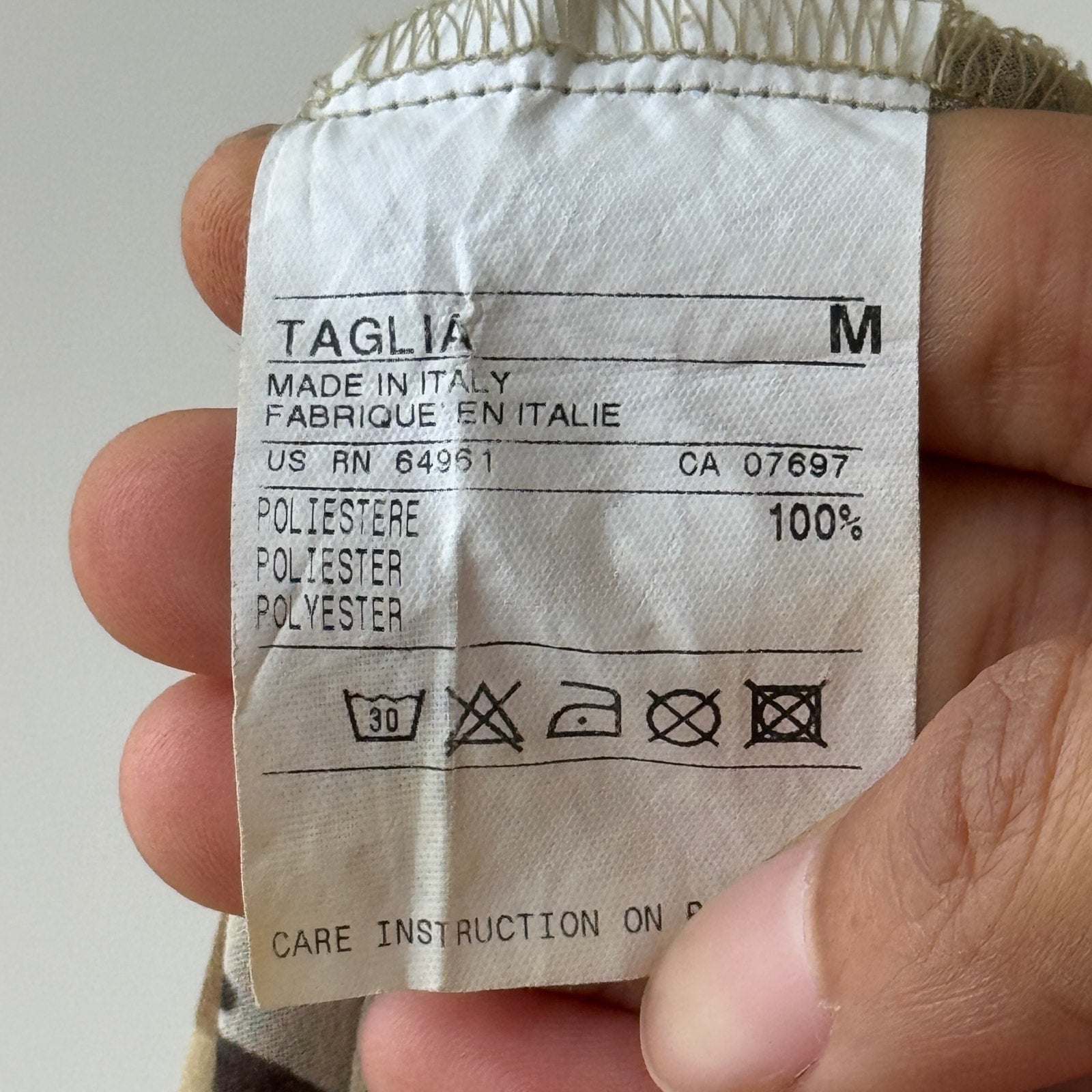 Beautiful Italian-made Benetton top featuring a bold abstract floral print in earthy neutrals and soft lilac, finished with a romantic lace-up front. Lightweight, feminine.