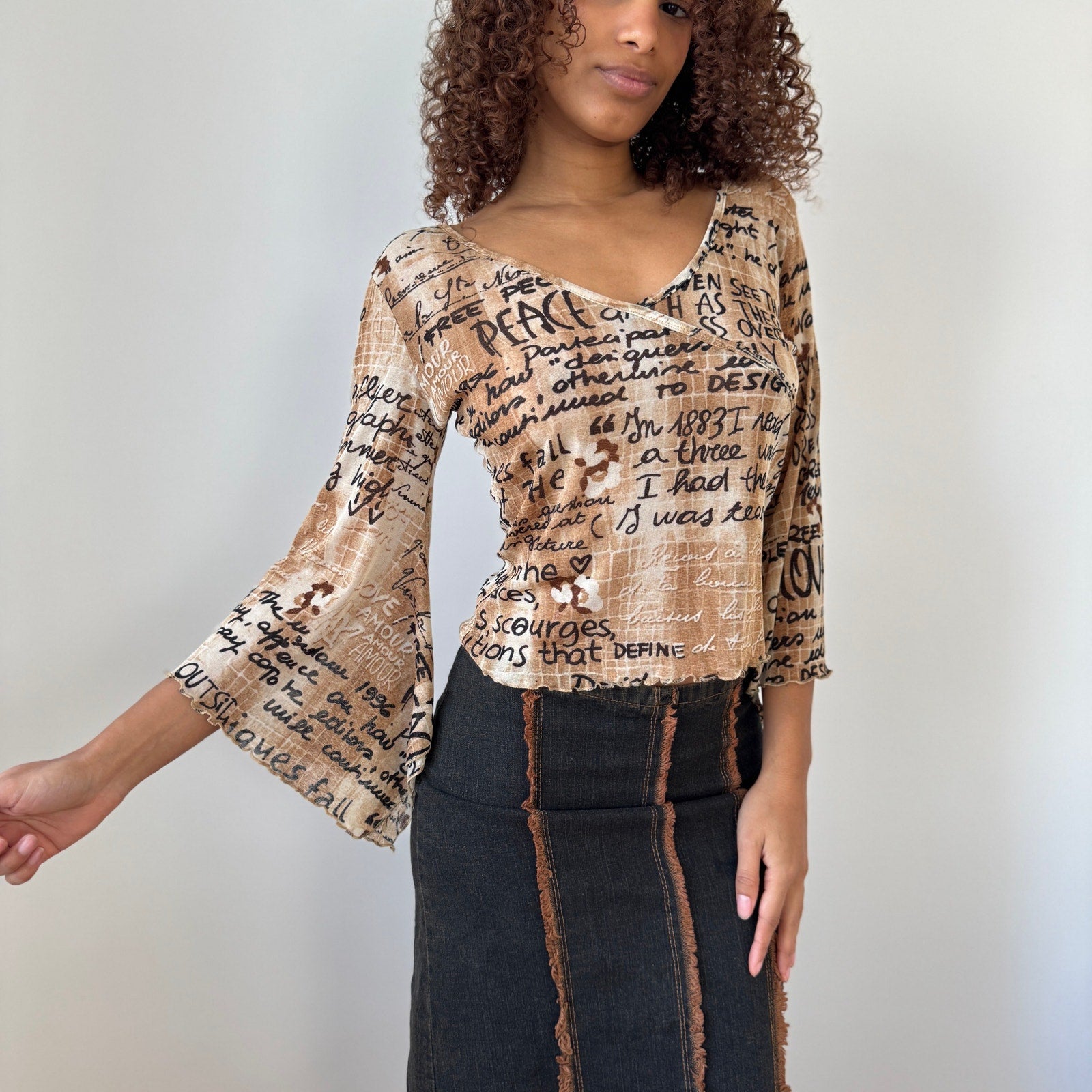 Vintage Italian-made denim midi skirt in a dark blue wash with contrast brown seam detailing. Structured denim with some stretch. Mid rise fit. Fitted through the hips. Raw frayed seam accents throughout. Back zipper closure. Midi length. Free shipping on bundles <3