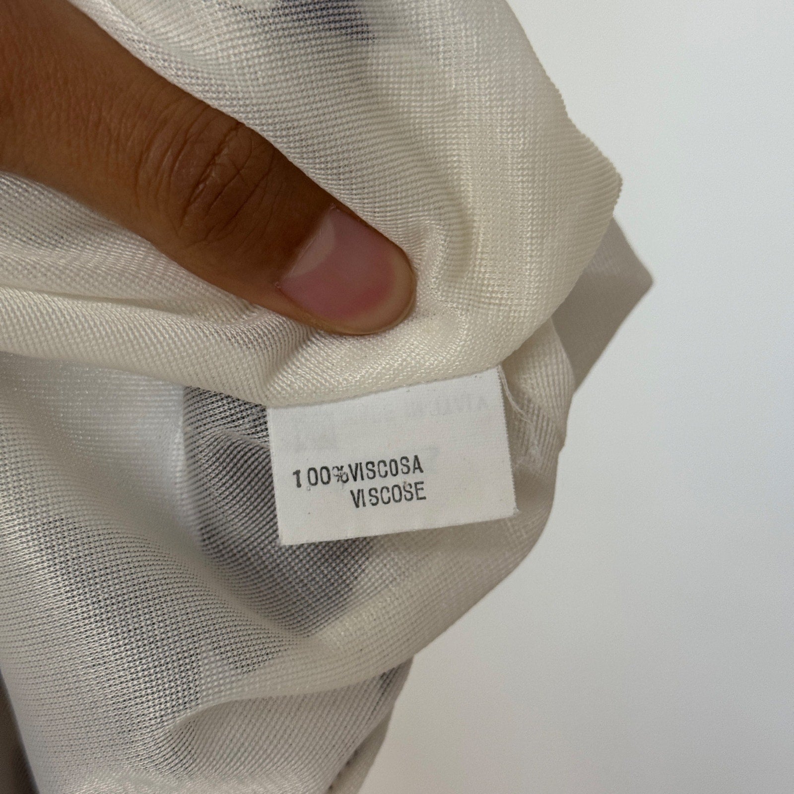 Mesh 100% viscose slip dress in cream with wine-red dot print, soft V-neck front & back, and subtle sequin trim along one neckline—easy drape that skims the body. Viscose = regenerated cellulose with beautiful movement and comfort.