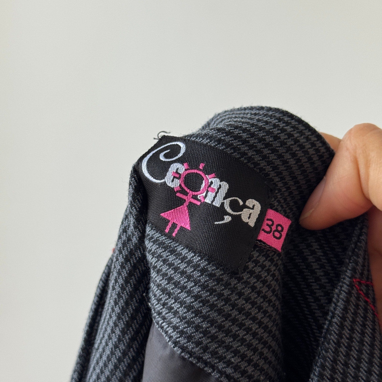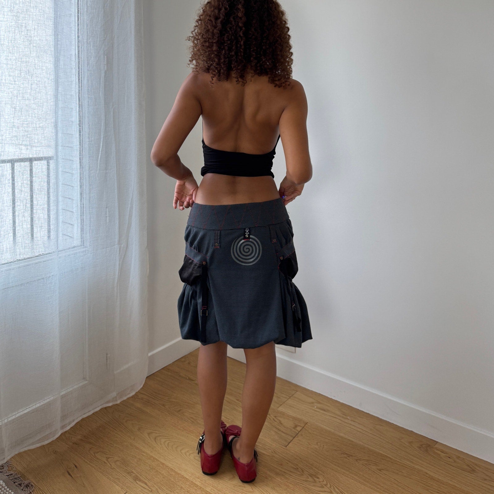 Vintage Euro structured zip-front bubble-hem skirt with contrast stitching (S/M)