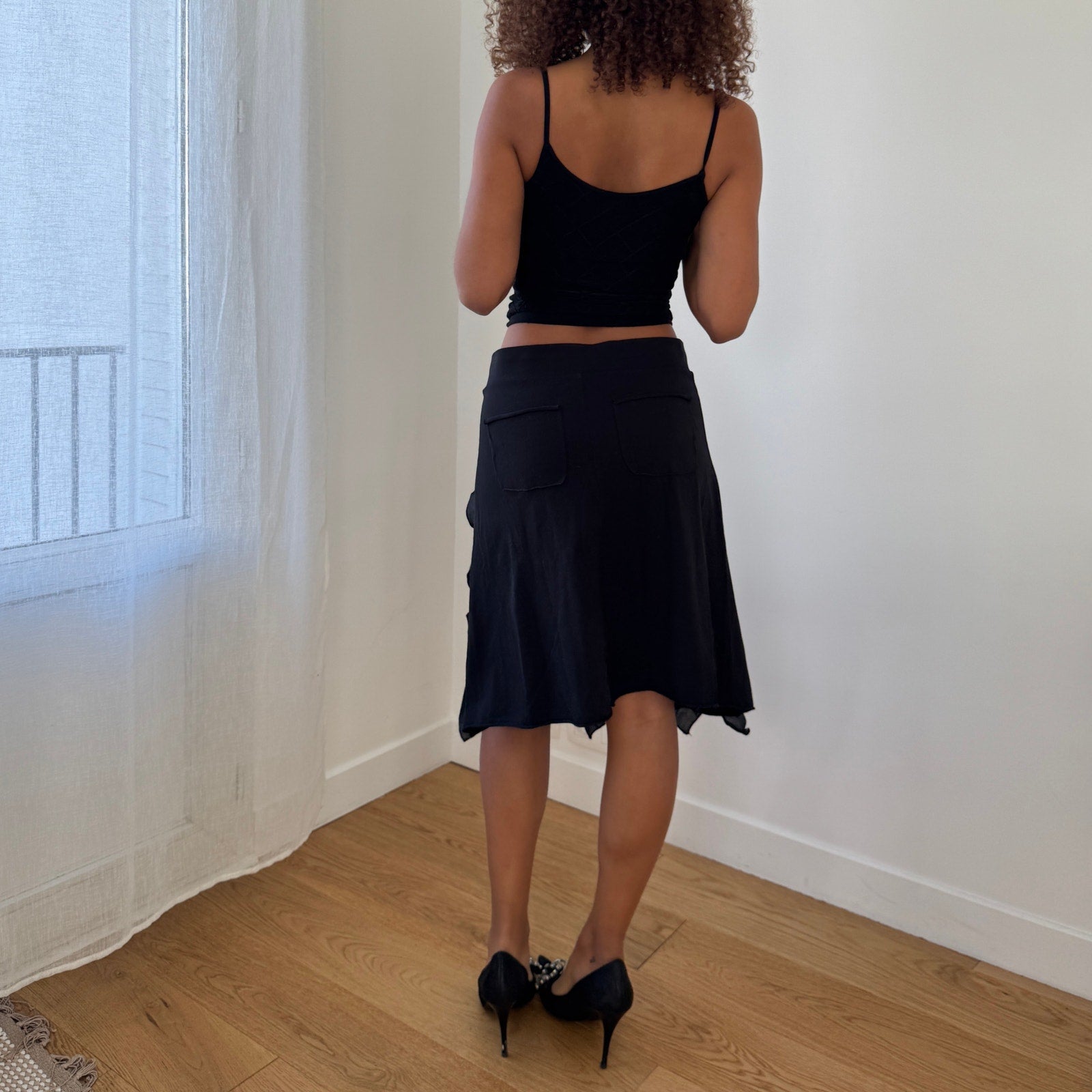 Vintage Cop Copine Euro Y2K Black Ruffle Panel Midi Skirt (Small)