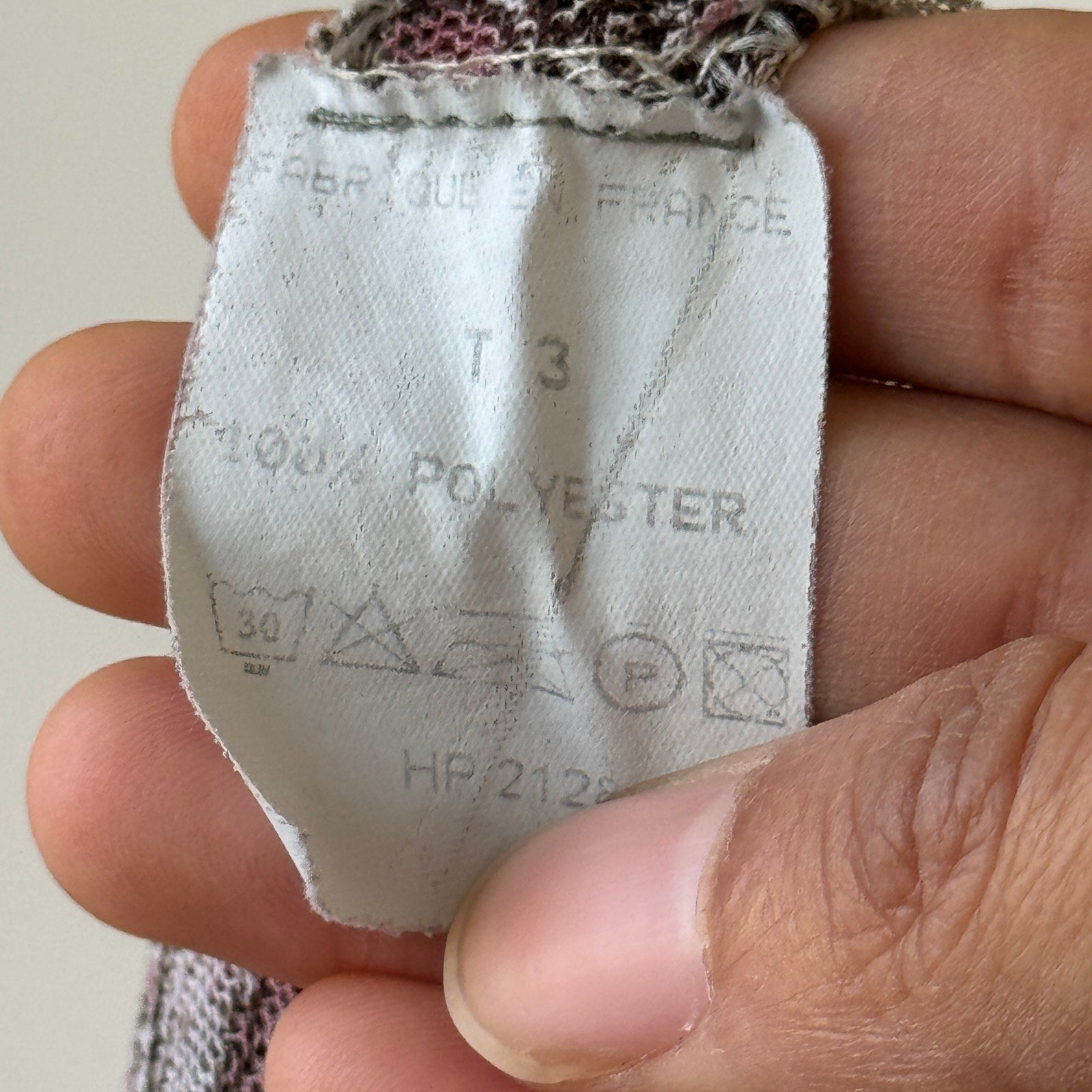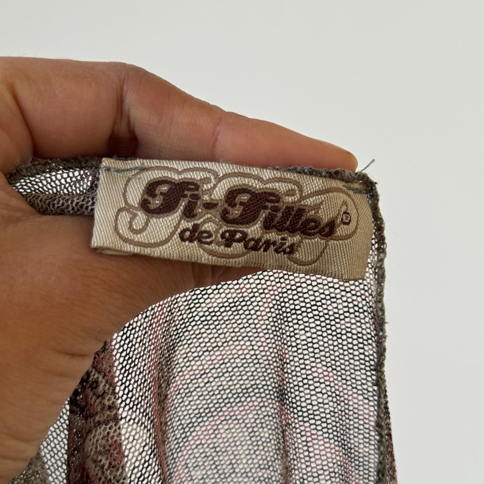 Vintage French mesh long sleeve top with floral, paisley & leopard print S