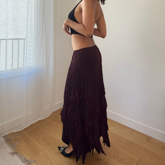 Vintage French Cream Maxi Skirt Ruched Hem (XS/S)