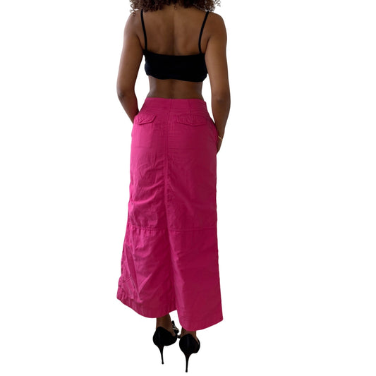 Vintage Euro Y2K Hot Pink Low Rise Zip Front Midi Skirt (XS)