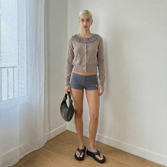 Vintage Marella Taupe Wool Cashmere Cardigan Fringe Collar (S)