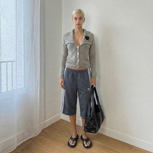 Italian Vintage Taupe Mohair Wool Cardigan Embellished Floral (S)