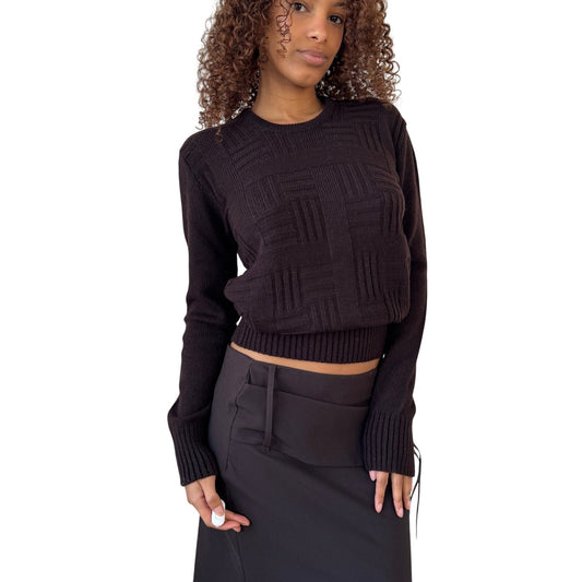 Vintage Italian 70s–80s Dark Brown Wool Knit Long Sleeve Sweater (S/M)