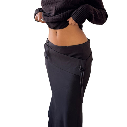 Vintage Cop Copine Euro Y2K Black Ruffle Panel Midi Skirt (Small)