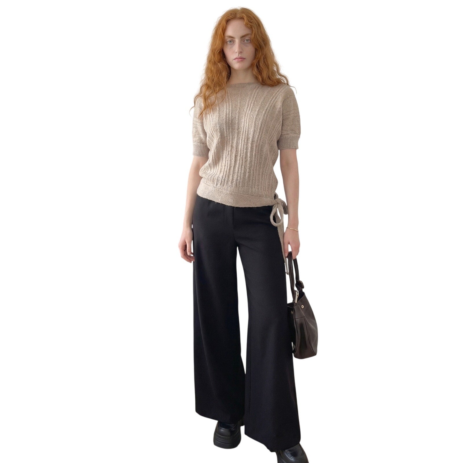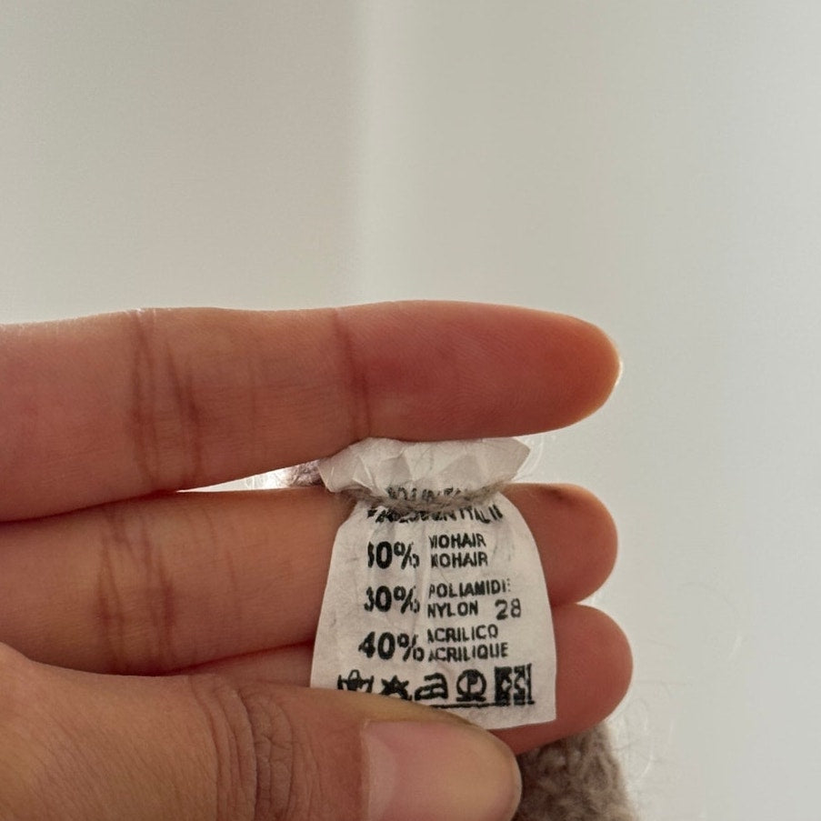 Vintage Italian Beige Mohair Blend Knit Top Short Sleeve Textured Fitted (M)