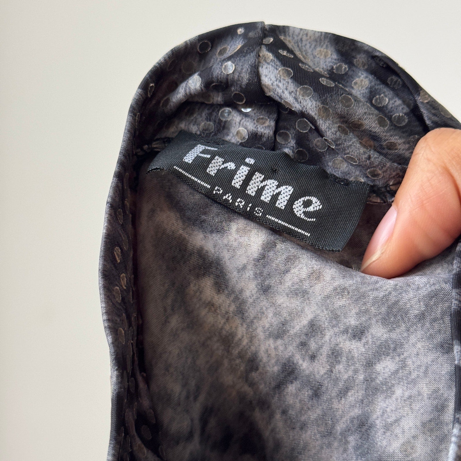 French Vintage Slinky Leopard Shimmer Mock-Neck Top (S/M)