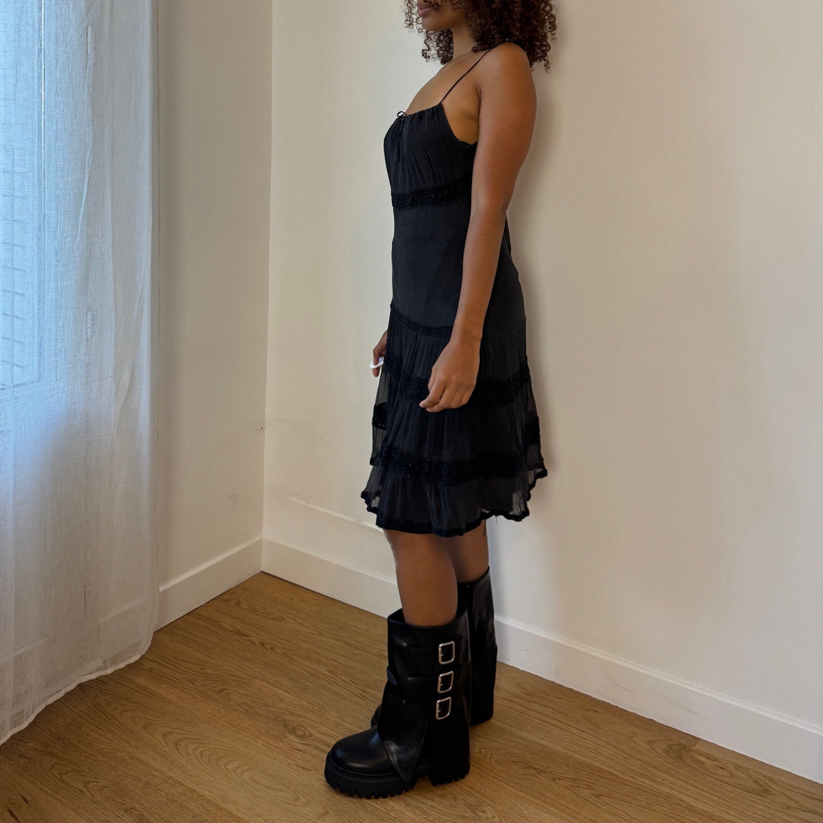 Italian Vintage 100% Silk Tiered Spaghetti-Strap Dress (S)