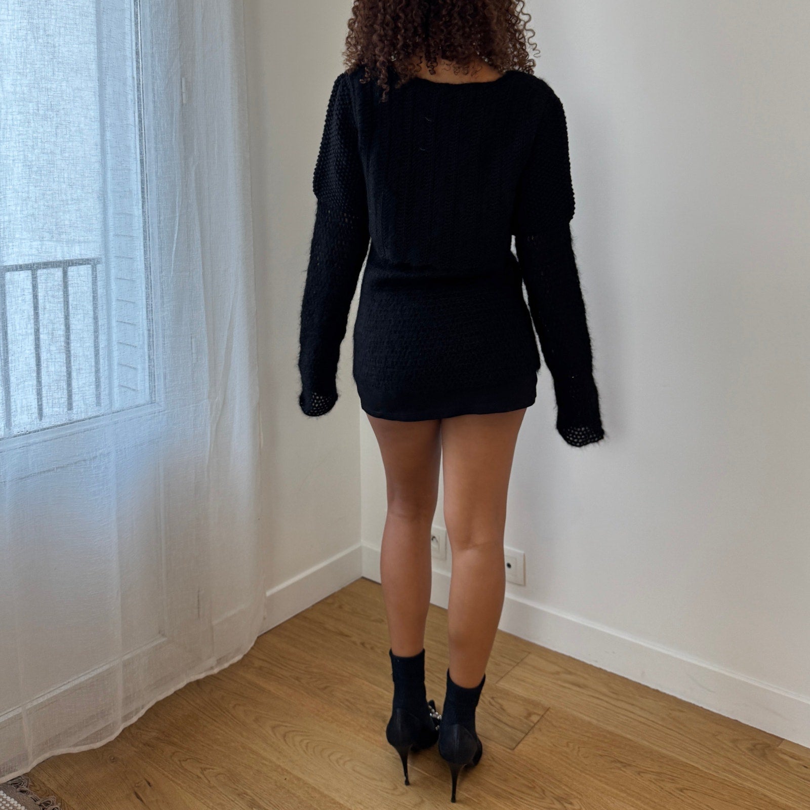 Unique Italian vintage knit top designed to look like a two-piece set.