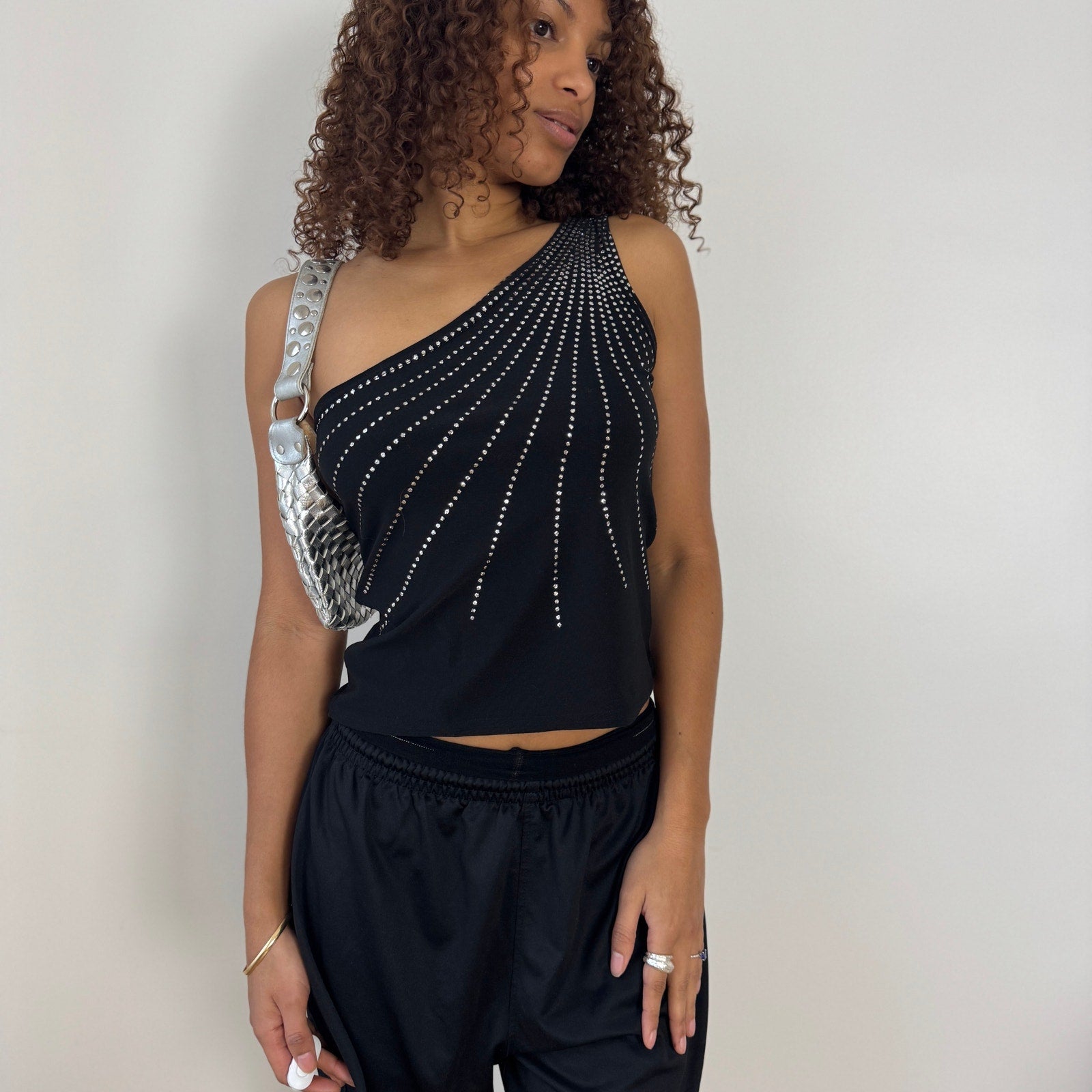 - Black asymmetrical one shoulder top