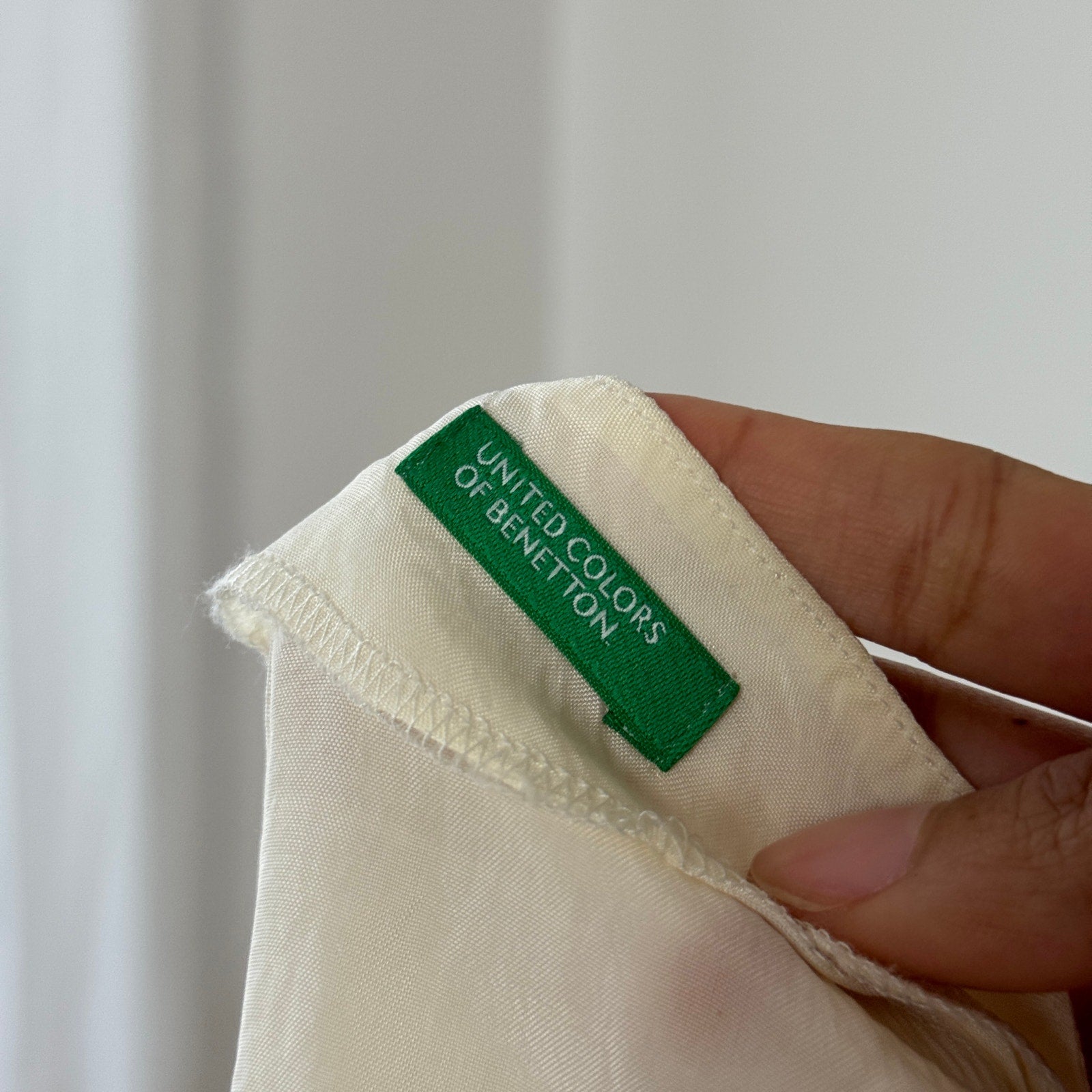 Elegant vintage Benetton satin cami featuring soft ivory sheen, delicate lace inserts at the bust and midline, and refined pin-tuck detailing down the front. Flowy, lightweight, and subtly romantic with a flattering V-neckline and fully adjustable spaghetti straps. Zipper side closure. Free shipping on bundles <3