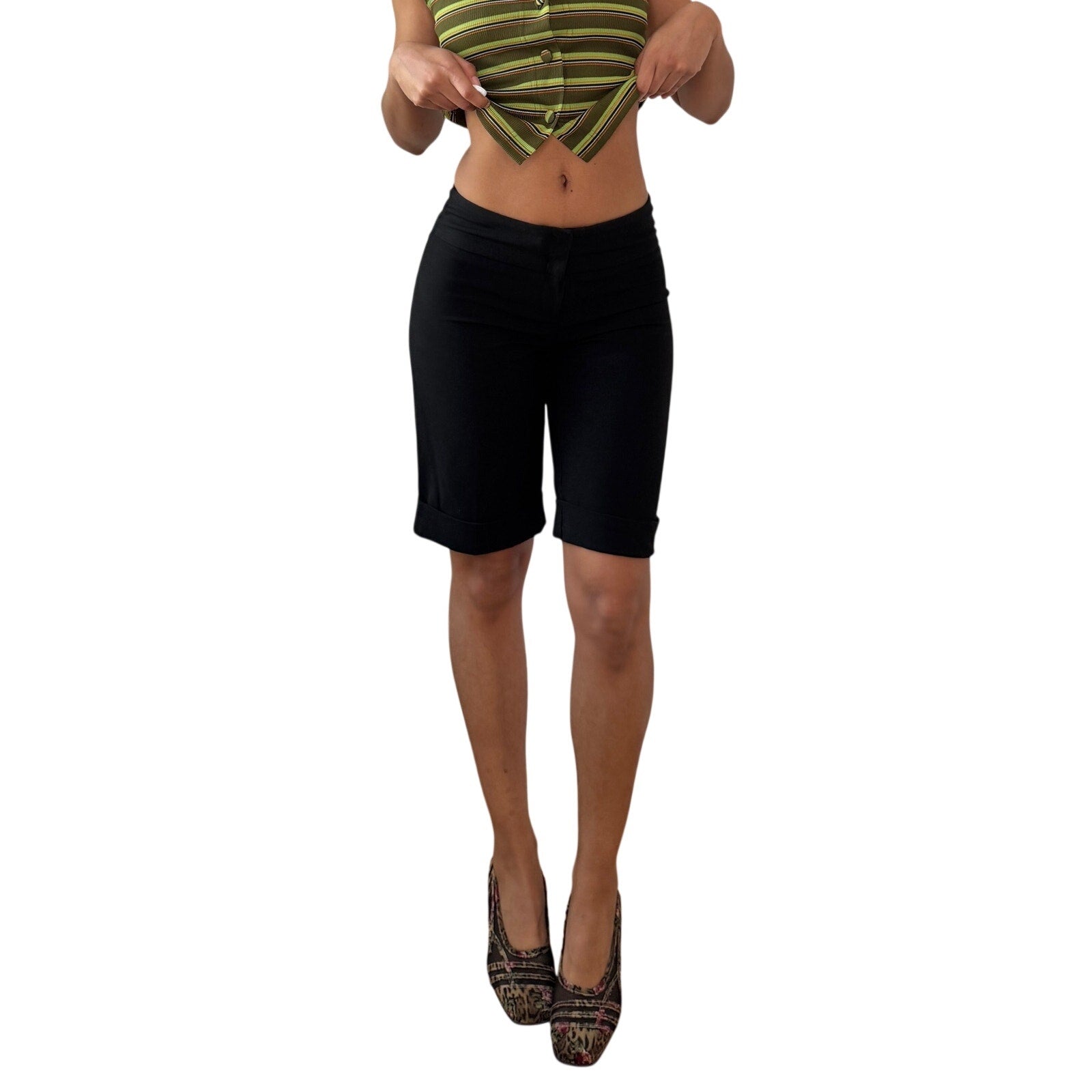 Vintage Black Capri Shorts Low Rise Y2K Morgan Polyester Viscose (XS/S)