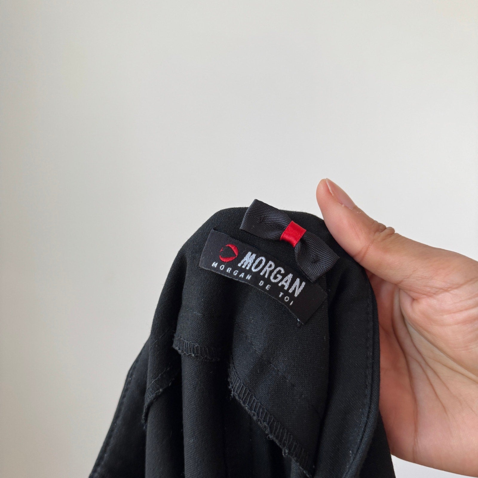 Vintage Morgan bermuda shorts in polyester and viscose blend. Black, low-rise fit, zip and button closure, clean front with cuffed hem. Fabric is smooth and structured with minimal stretch. Free shipping on bundles <3