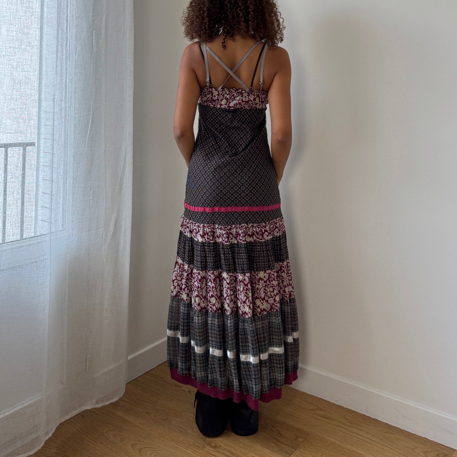 Vintage Cop Copine patchwork print cotton maxi dress with cross back (Small)