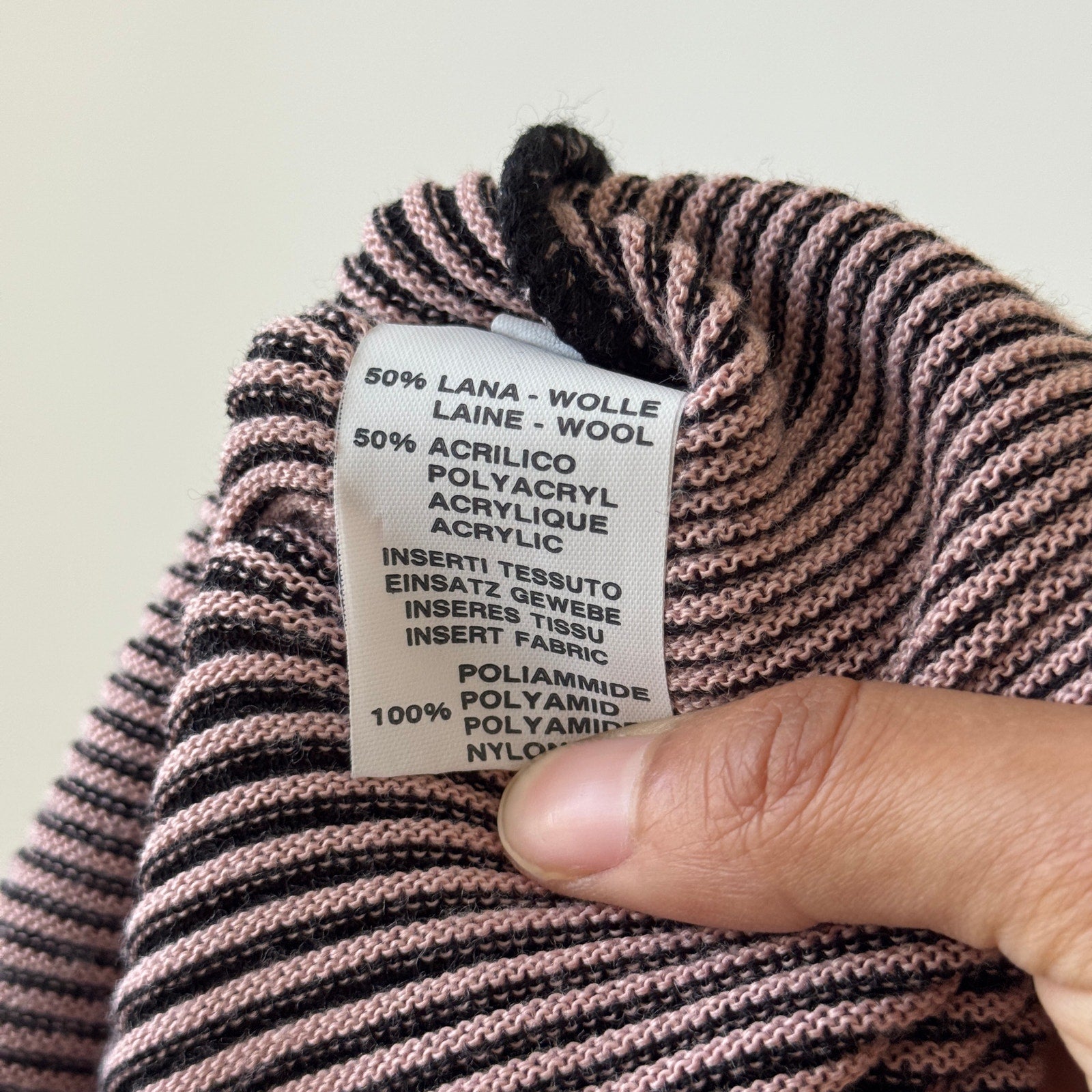 Vintage Euro black + pink mesh-knit ruffle-sleeve top (S)