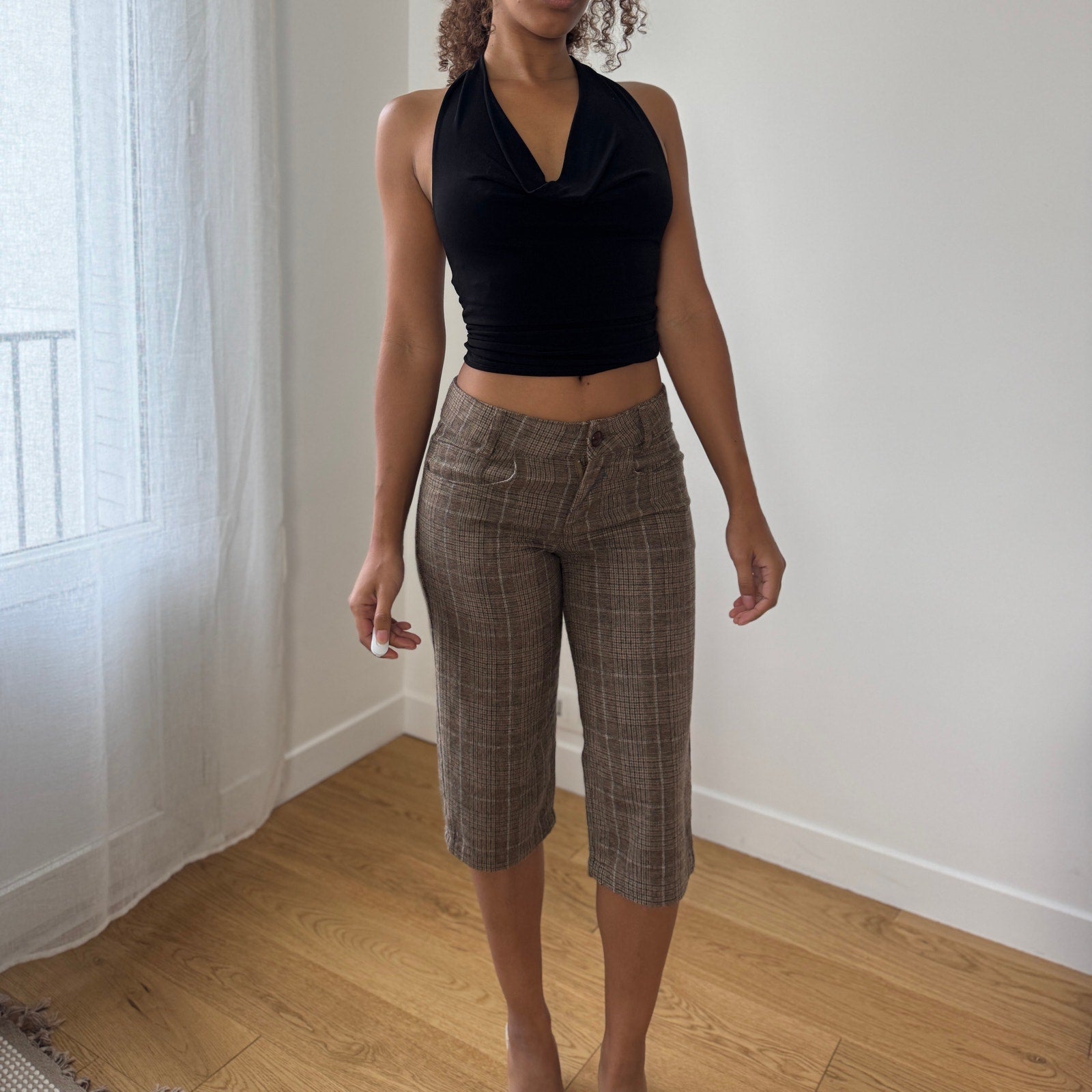 Vintage Euro brown plaid wool capri pants (XS/S)