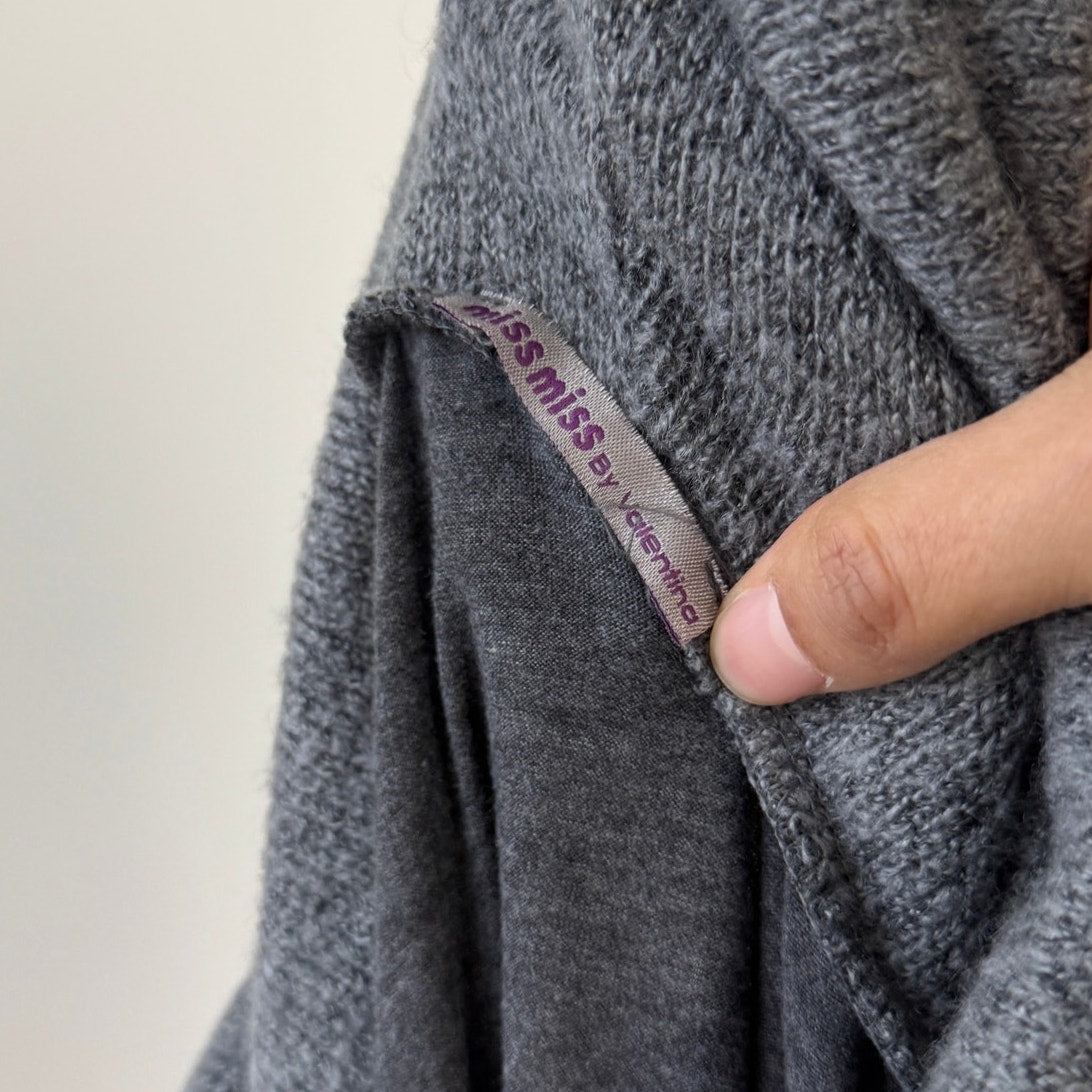 Vintage euro grey slinky long sleeve top with knit cowl neckline (S/M)